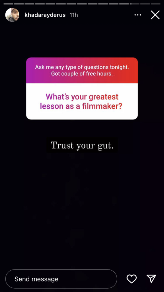 Having a vision is one of the most important jobs of a film director. A director must have a clear idea what is the main question that leads the story throughout the film. When a director has assimilated that, they can make decisions based on their gut feeling.
